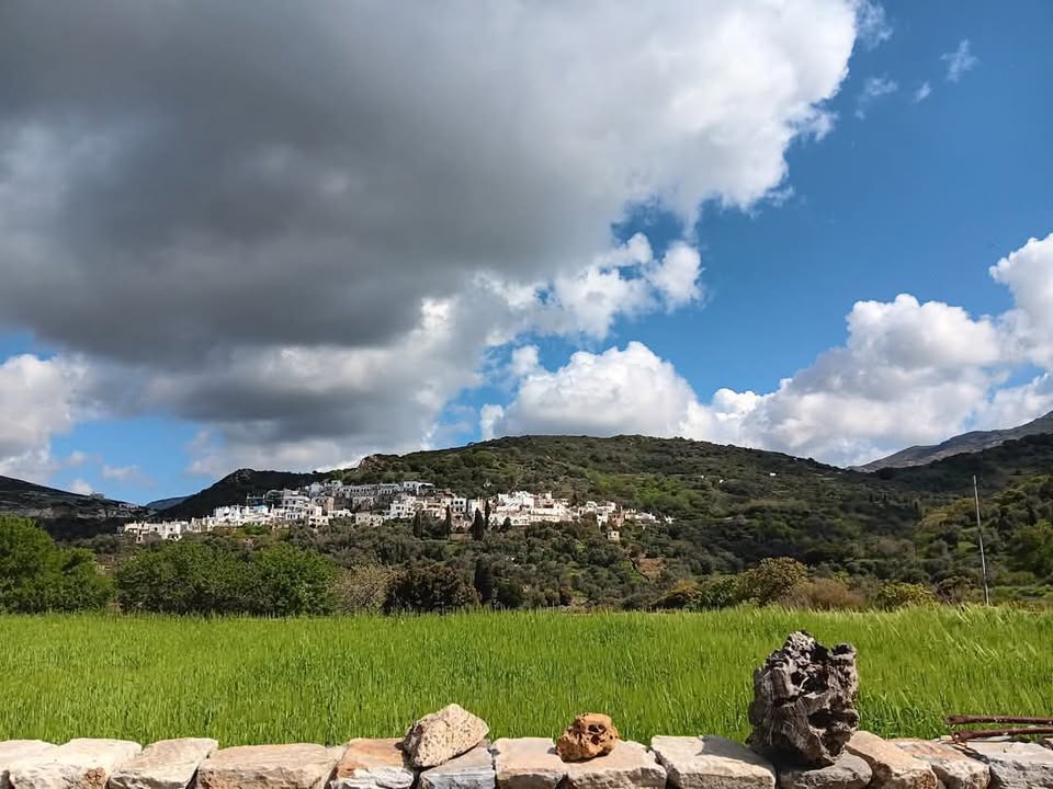 Το τοπίο αυτό, ακολουθώντας το κελαρυστό, σιγομουρμουριστό ποτάμι με το παλιό πέτρινο γεφύρι ακριβώς κάτω από το χωριό, ξεχύνεται σαν χείμαρρος στα ριζά του, σχηματίζοντας αρχικά μια καταπράσινη λεκάνη γεμάτη καλλιέργειες, ενώ απρόσμενα, σχίζει ύστερα στα δύο τον απέναντι ορεινό όγκο και καταλήγει ηδονικά στη θάλασσα που είναι ορατή (!) από τη Μονή, αν και βρίσκεται σε απόσταση 20km απο τη Χώρα της Νάξου!