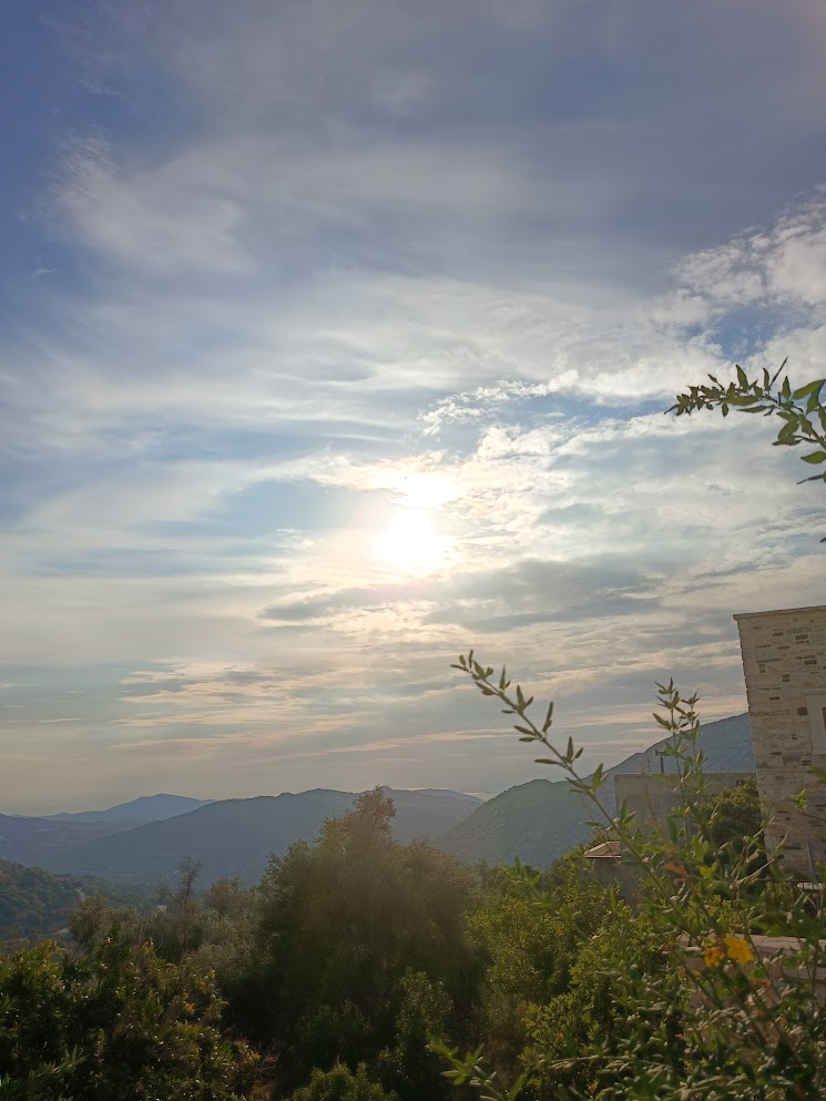 Η φυσική της θέση είναι τόσο σοφά και αρμονικά δεμένη με το γεμάτο ελιές, αμπέλια, φρουτόδεντρα, μπαξέδες και μποστάνια περιβάλλον, ώστε αποτελεί , ομολογουμένως, ένα από τα ομορφότερα φυσικά «μπαλκόνια» του Αιγαίου. Ένα μπαλκόνι σαν μια απρόσμενη βουνίσια, ανοιχτή αγκαλιά, που χαμογελά διάπλατα στον ήλιο και ατενίζει όλο το εντυπωσιακό τοπίο ίσια μπροστά.