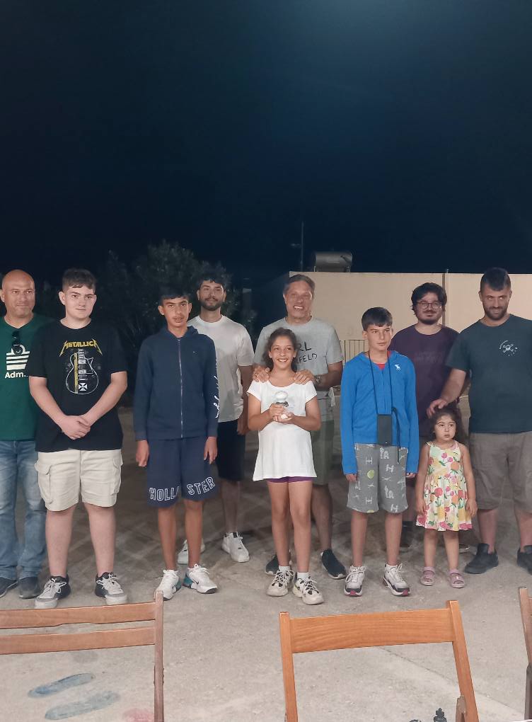 Το Σάββατο 16 Αυγούστου πραγματοποιήθηκαν οι αγώνες της παιδικής κατηγορίας. Μεγάλη νικήτρια αναδείχθηκε η Φωτεινή Λαμπαδάκη, η οποία κατέκτησε το μαρμάρινο πιόνι – έπαθλο, προσφορά της αγαπημένης μας γλύπτριας Δέσποινας Καπίρη από το «ΜΑΡΜΑΙΡΩ».