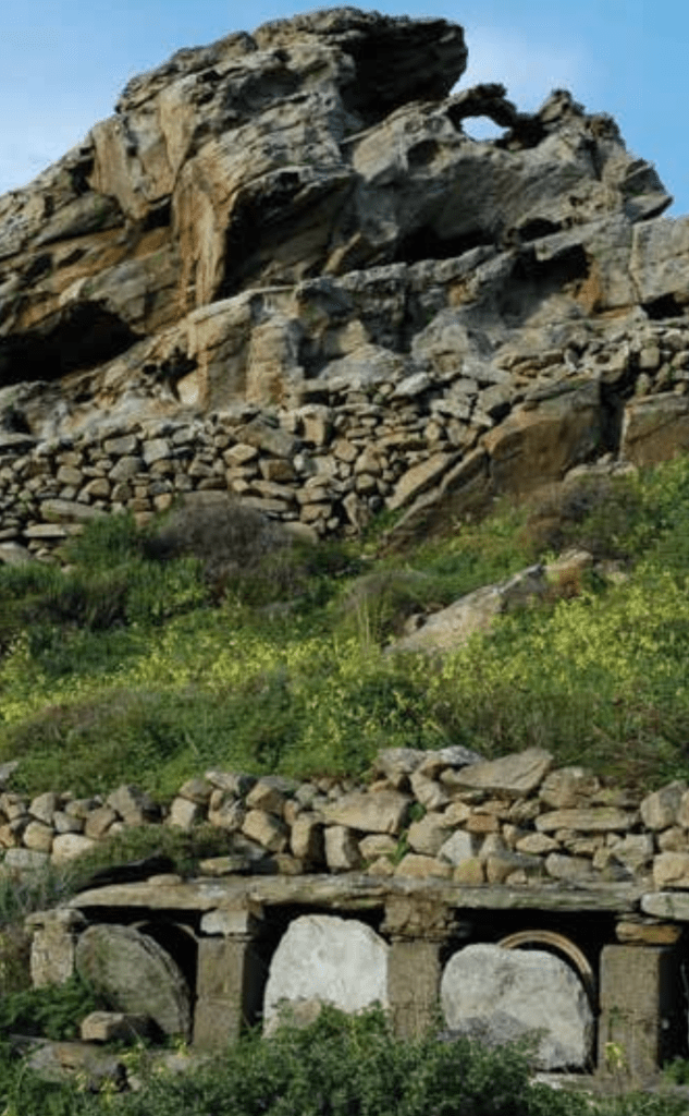 Πλαισιωμένα από την ξερολιθιά, τα έργα λιθοδομής με συνδετικό υλικό –οι κατοικιές, οι ανεμόμυλοι, οι περιστεριώνες, τα εκκλησάκια– φιλοξένησαν την ανθρώπινη ανάγκη, σοφά τοποθετημένα στις καμπύλες και τα υψώματα του εδάφους, ακολουθώντας και όχι διαταράσσοντας τη φυσική του διαμόρφωση, εξοικονομώντας και όχι σπαταλώντας πόρους, σε αρμονική συνύπαρξη με τον κυκλαδίτικο ήλιο και αέρα.